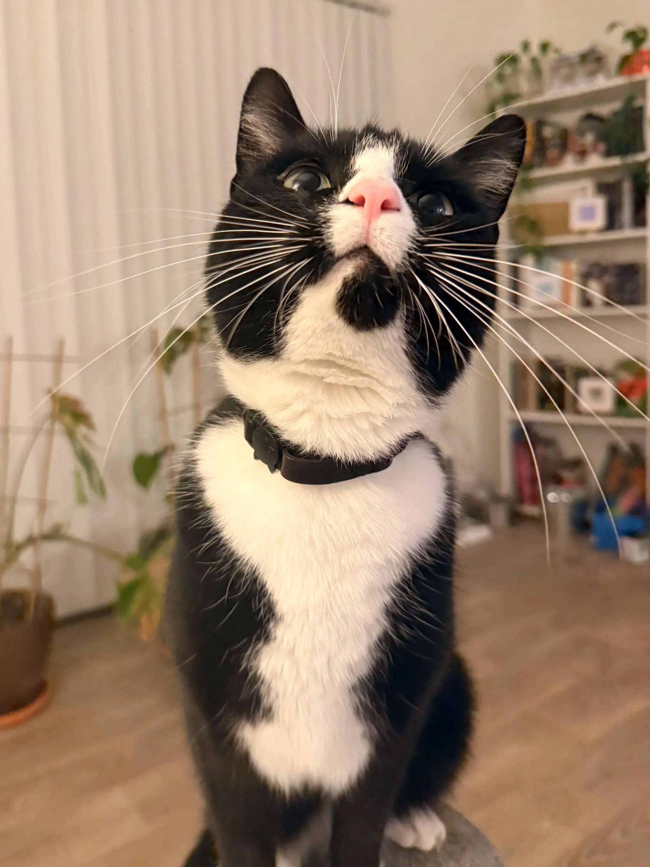 Forty, 3 years old, is the newest cat in the clowder. He is a tuxedo cat who is very motivated by food. He’s not a big fan of snuggles. But he is a big fan of playing with his sisters, that is, until they gang up on him. Even though he is the biggest cat in the house, he knows who is truly in charge. Forty loves snacks of all kinds (except popcorn) and he hates being touched.